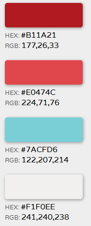 因?yàn)槲陌甘谴和淼墓?jié)目單,過年大家都會(huì)使用紅色作為主色調(diào),寓意吉祥、喜慶。因此我在配色網(wǎng)站找了一組含紅色的配色: