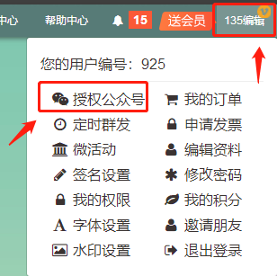 ▼登錄135賬戶,點(diǎn)擊【授權(quán)公眾號】