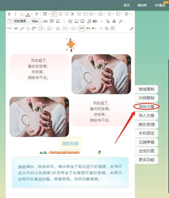 ▼點(diǎn)擊編輯欄右側(cè)菜單【保存文章】