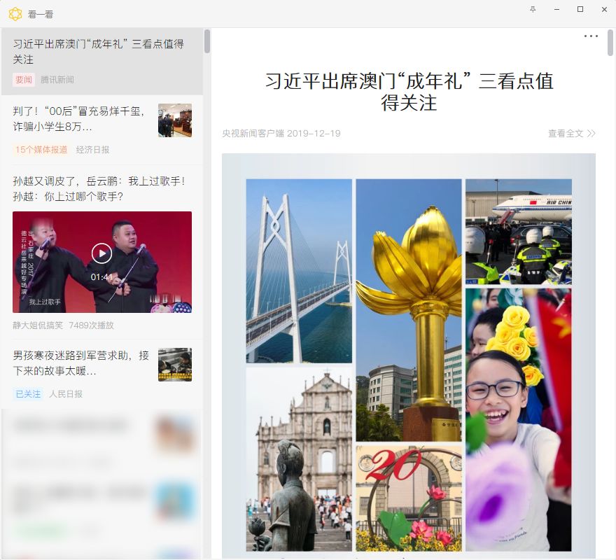 在之前的版本中,PC端是沒(méi)有『看一看』這個(gè)功能的,此次更新后在左側(cè)菜單欄中新增『看一看』入口,點(diǎn)進(jìn)去即可看到精選的文章。