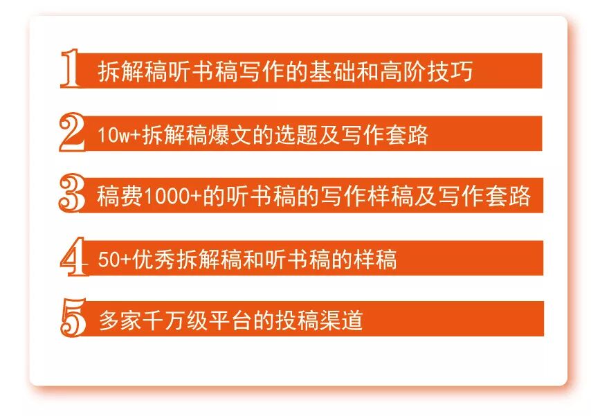 拆解稿,聽書稿這種寫作文體,上手快,不必擔心沒有東西寫,更不怕書讀不下去,稿費還非常豐厚,單篇稿費1000元起步,頭部平臺的稿費在6000元以上。