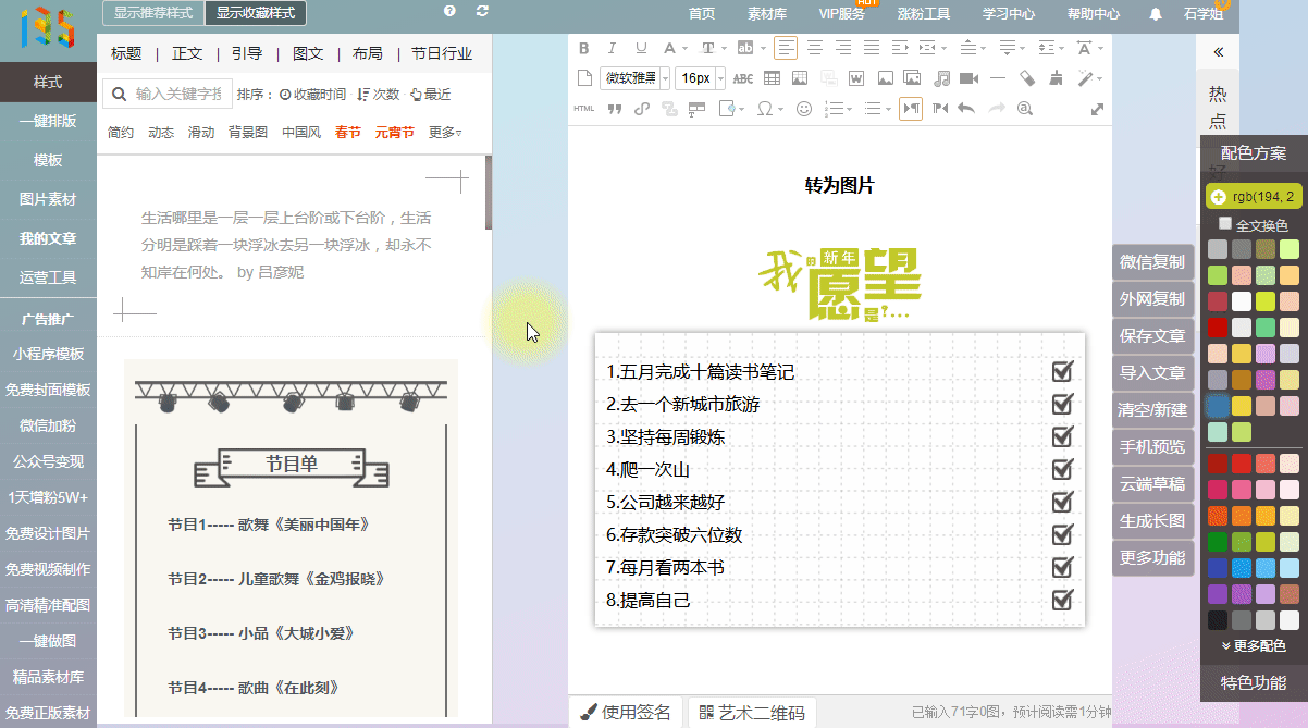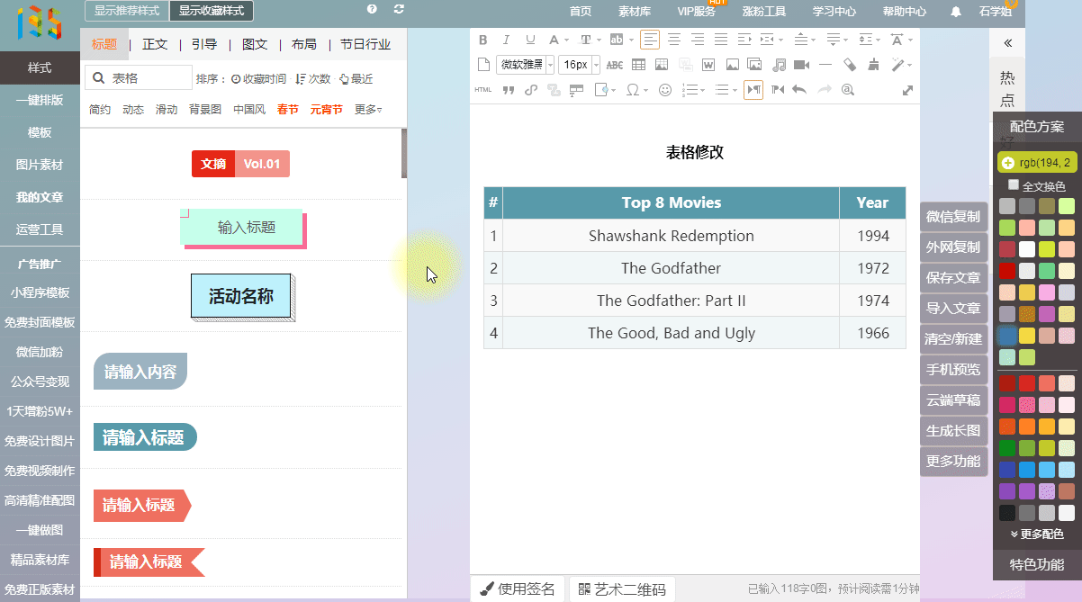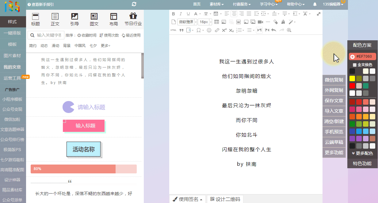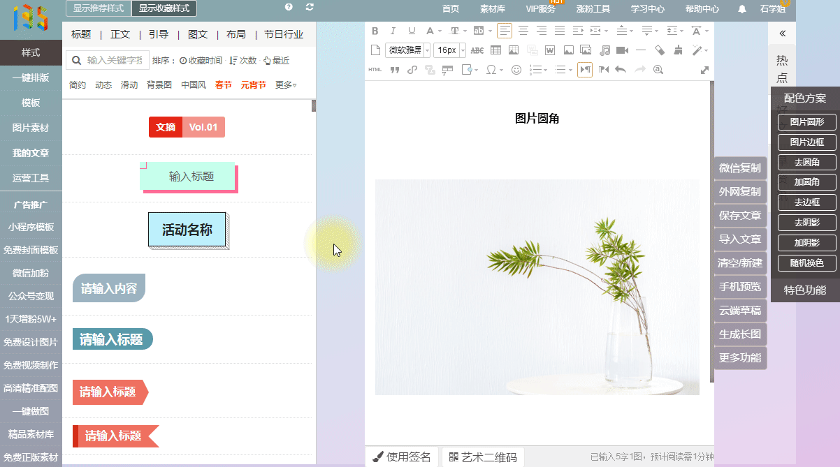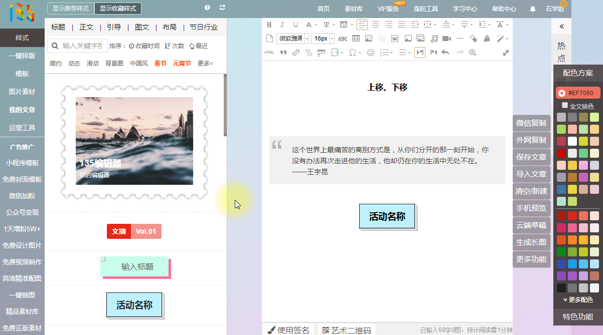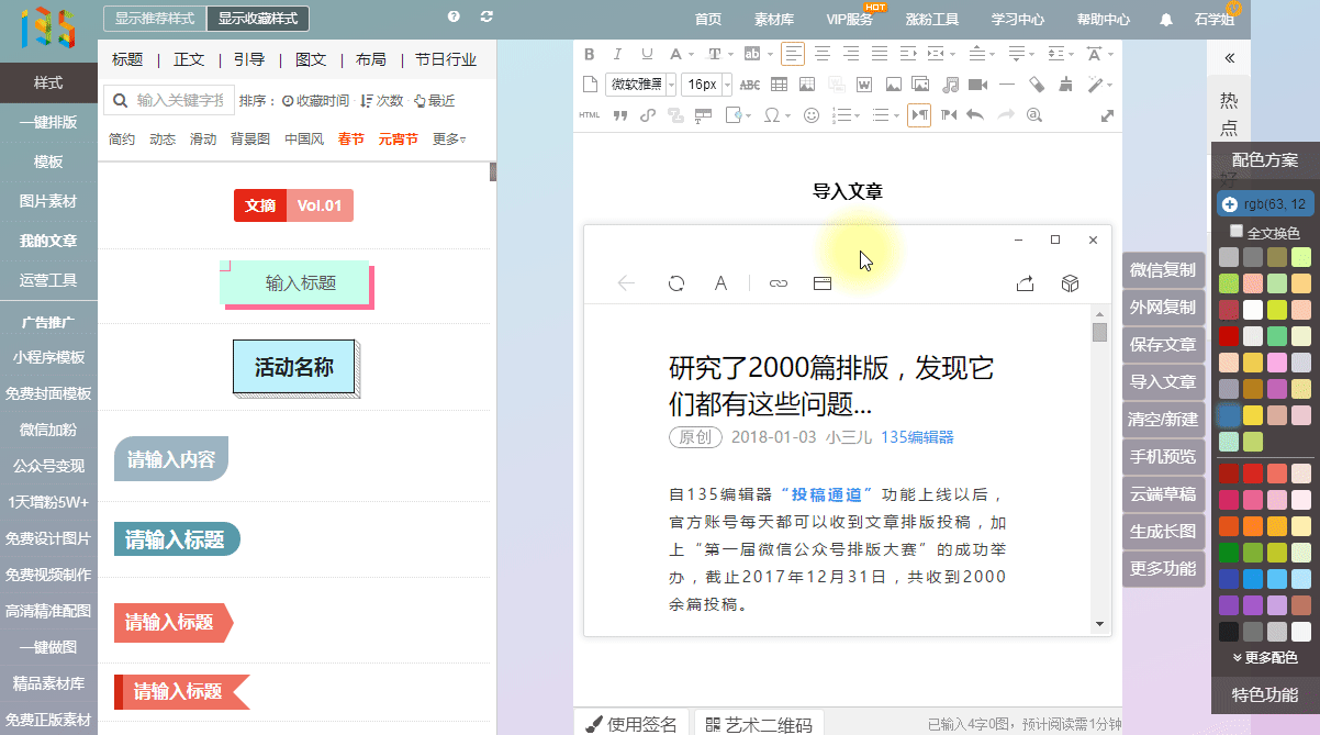 編輯區(qū)內(nèi)放置需要排版的內(nèi)容,選擇相應(yīng)的一鍵排版模板,即可瞬間完成排版工作。