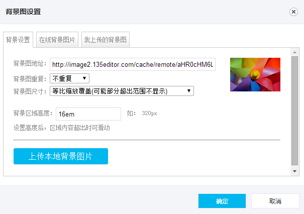 用同樣的方法替換背景圖,然后在替換背景圖的頁(yè)面上有一個(gè)“背景區(qū)域高度”,然后將高度更換為150px即可出現(xiàn)排版案例當(dāng)中的效果。
