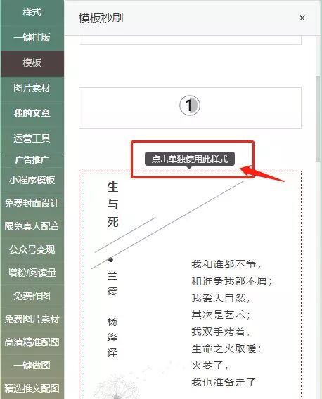 通常我們可以先將模板整個(gè)插入編輯器,再進(jìn)行單個(gè)樣式的添加,例如詩(shī)歌模板中需要添加多首詩(shī)歌或名句摘錄,而模板只有4個(gè)樣例,就可以使用單個(gè)樣式進(jìn)行添加排版。(詩(shī)歌秒刷模板的編號(hào)標(biāo)題固定只有4個(gè),具體使用方法下面單獨(dú)給大家介紹~)