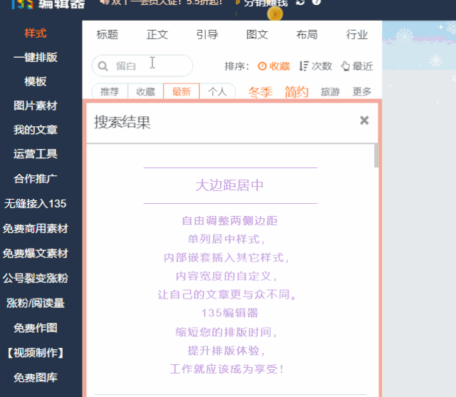 在樣式中心搜索【留白】,即有大量留白樣式可選用!