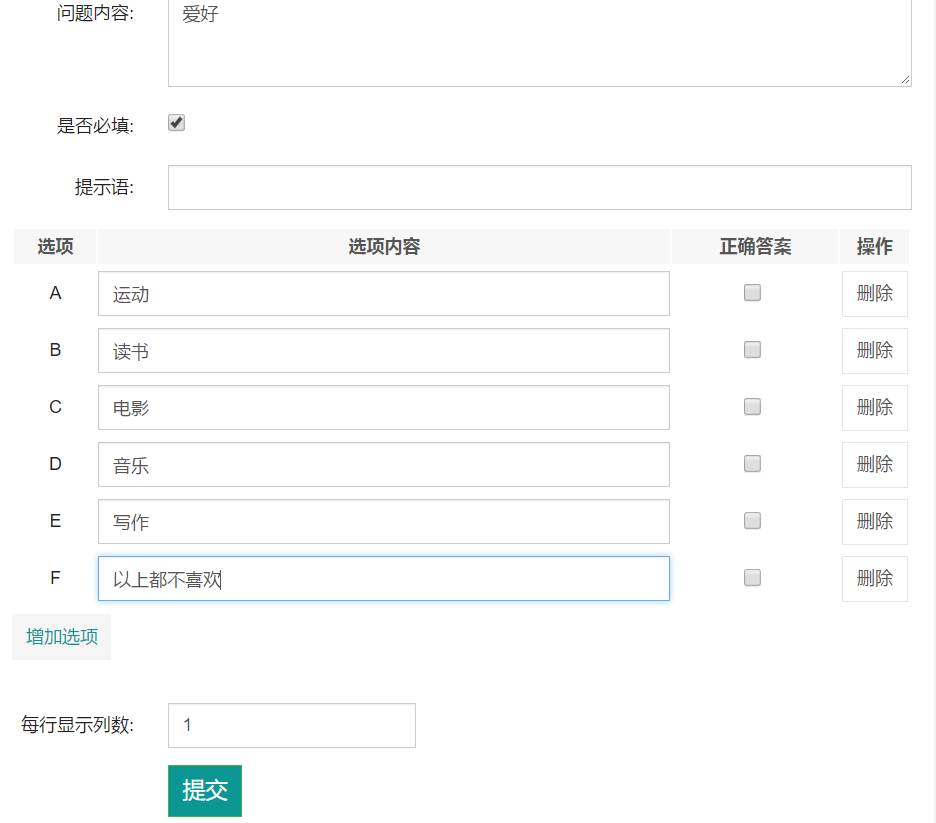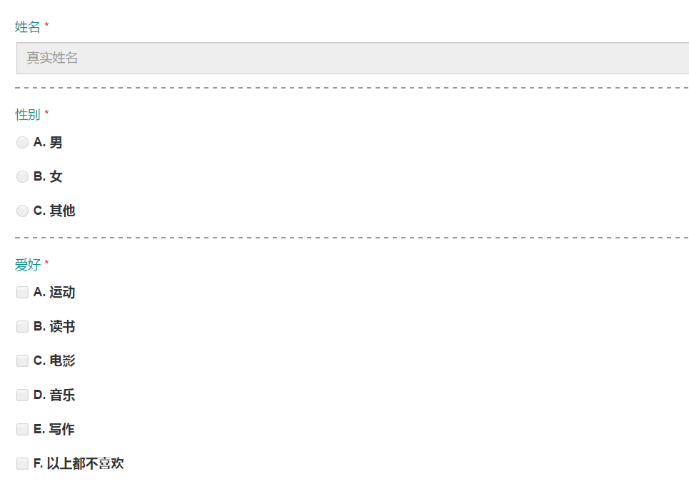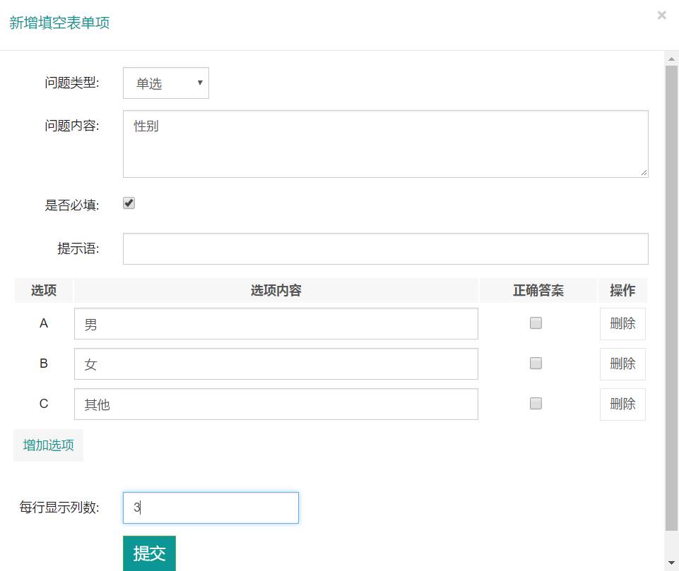 6.這個表單可以實現(xiàn)四大功能。填空、單選、多選、問答。接下來我們一一講解。