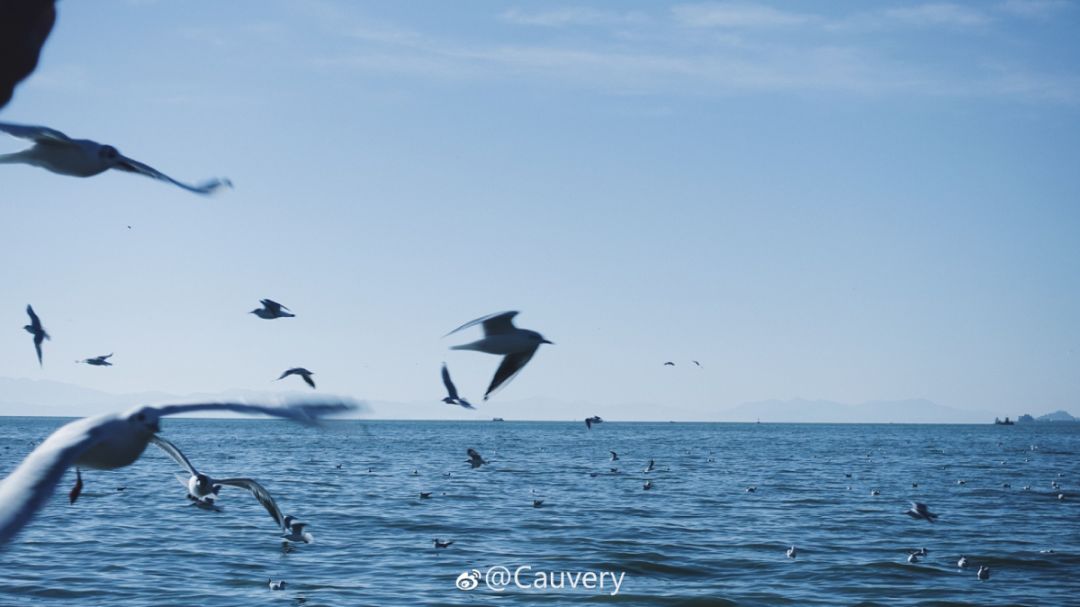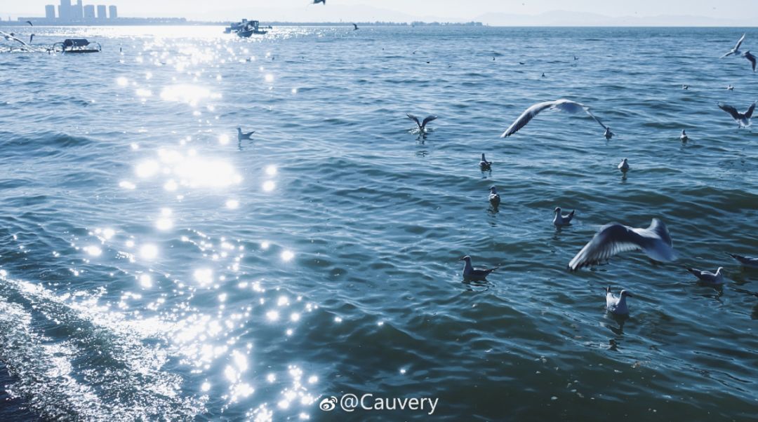 到滇池拍海鷗甚至不需要花錢。太多人買面包喂食了,隨便在地上撿一些掉落的面包塊,向著湖面伸長手臂,海鷗會快速的叼走,我甚至不知道海鷗有這么好的胃口。當它們飛向你時,放松一點,小心海鷗沖向面包時誤傷到你。