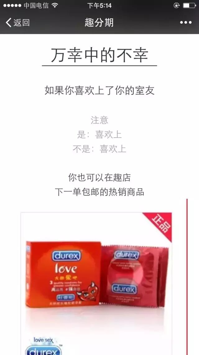 公眾號(hào)反面教材:趣分期;正面教材,杜蕾斯。趣分期的配圖很模糊,而且沒有美感;反過來看杜蕾斯的配圖,不僅清晰,而且放在一束花中,給人一種美好的感覺。