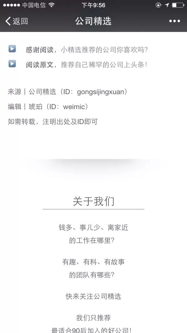 公眾號(hào)的反面案例,隸屬于解放軍日報(bào)社的公眾號(hào)“報(bào)刊文摘”;正面案例:“公司精選”。