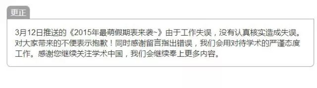 這是3月10號(hào)前后在朋友圈刷屏的文章,當(dāng)時(shí)《人民日報(bào)》、《中國青年報(bào)》都發(fā)的是錯(cuò)誤的文章,但是都沒有更正或者道歉。這篇道歉并更正的公眾號(hào)是:學(xué)術(shù)中國。