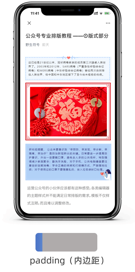 盒模型是公眾號(hào)中最基本的結(jié)構(gòu),我們可以把公眾號(hào)中的每一個(gè)元素都看作一個(gè)小盒子。