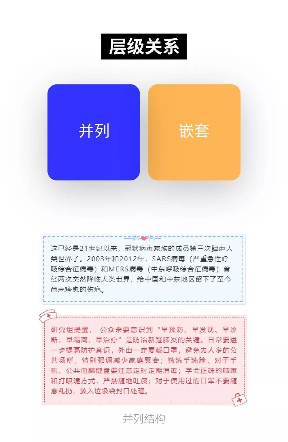 在并列結(jié)構(gòu)中,兩個(gè)并列的盒子互不影響;