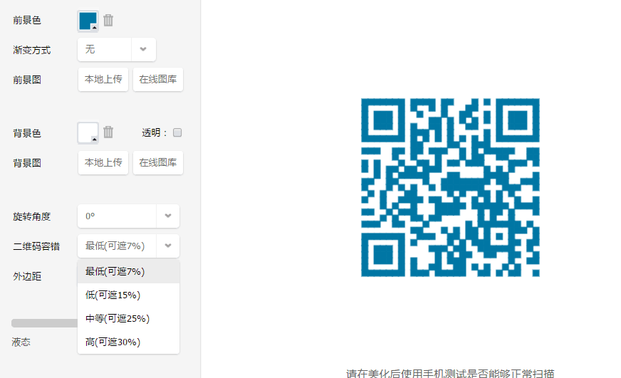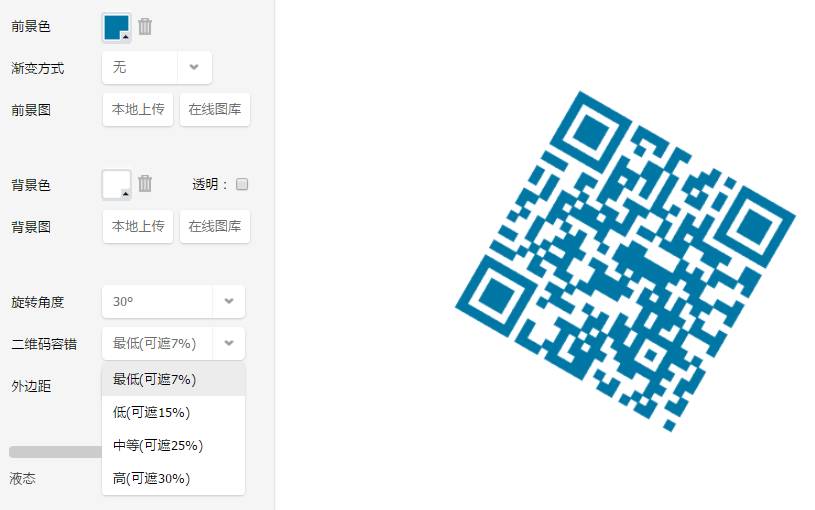 一般來說,二維碼被遮擋住一部分也是可以被掃出來的。二維碼容錯率即是指二維碼圖標(biāo)被遮擋多少后,仍可以被掃描出來的能力。容錯率越高,則二維碼圖片能被遮擋的部分越多。 二維碼容錯率用字母表示,容錯能力等級分為:L、M、Q、H四級: L 7% M 15% Q 25% H 30%