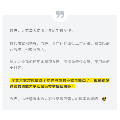 值得一提的是,這里的手機圖片樣式是用得非常巧妙的。因為文章的內(nèi)容是在講微信的搜索功能,配圖大多都是手機微信截圖,那單單放一張圖片會顯得有點單薄,如果把手機這個元素加進去,就會更加的場景化,增強用戶的閱讀體驗感。