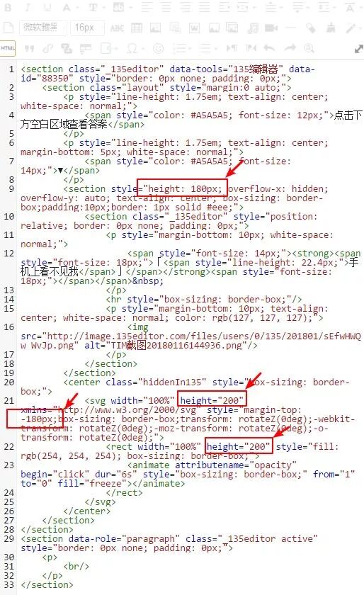 修改高度稍稍有些難度。需要修改源代碼,點擊【HTML】切換到代碼處找到下圖紅線框選的四處地方。