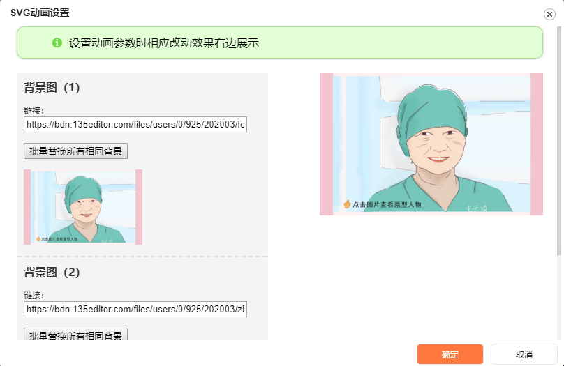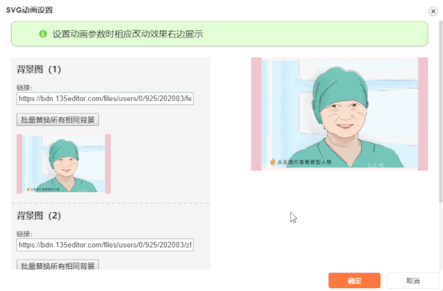 為了方便胖友們的操作,在動(dòng)畫(huà)編輯區(qū)域我們新增了動(dòng)畫(huà)展示框,胖友們完成圖片的設(shè)置后,可以在右側(cè)的展示區(qū)里點(diǎn)擊樣式查看效果哦!