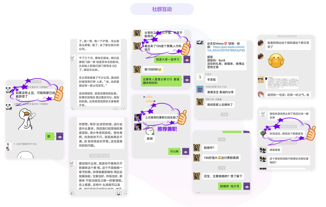 用戶均為購(gòu)買(mǎi)了135課堂年卡的付費(fèi)用戶,目前學(xué)員人數(shù)將近1000人。該群為群友提供最新的實(shí)時(shí)資訊、百G社群共享資料庫(kù)、垂直新媒體人脈資源、內(nèi)推優(yōu)質(zhì)崗位、1年20次左右免費(fèi)直播技能小課、免費(fèi)參加135課堂的2大自營(yíng)訓(xùn)練營(yíng)課程,更多自營(yíng)訓(xùn)練營(yíng)課程解鎖中。