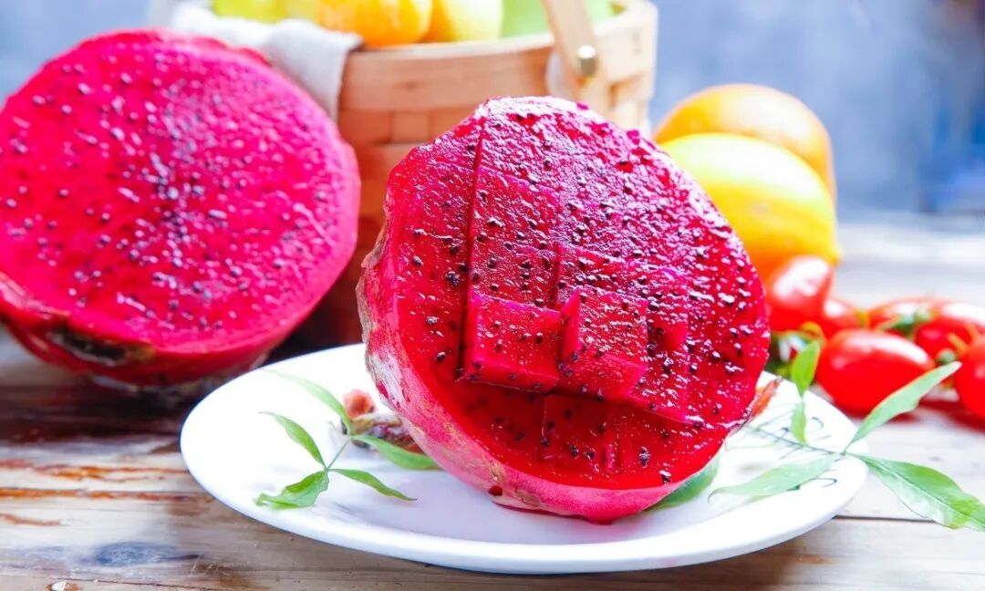 2.火龍果去皮,1/3切成小塊,放在杯底。
