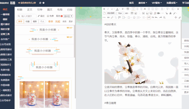 一鍵排版功能,它會自動識別標題,或者通過語法來精確判斷標題,三兒推薦使用MarkDown語法哦,這樣一鍵排版時系統(tǒng)能更精確識別文章中的不同內(nèi)容,讓排版更加準確!