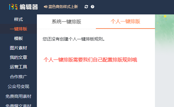 第一次點開『個人一鍵排版』,會提示你創(chuàng)建個人一鍵排版規(guī)則。