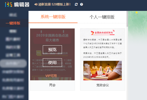 『一鍵排版』分為『系統(tǒng)一鍵排版』和『個人一鍵排版』兩個版塊。