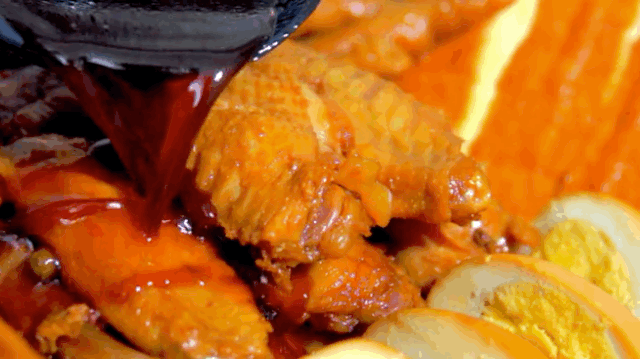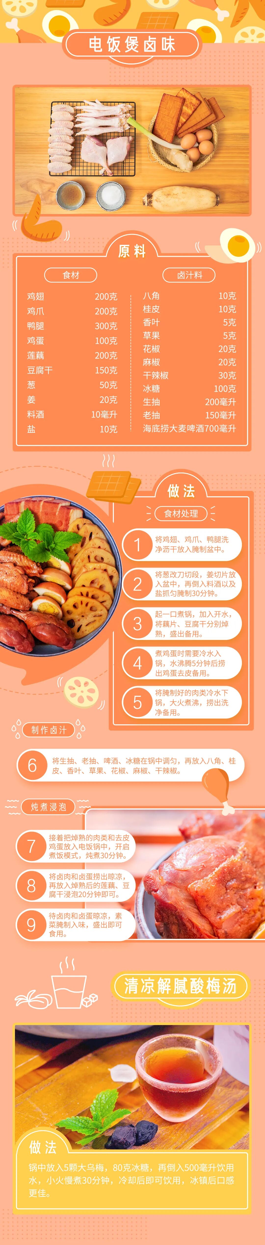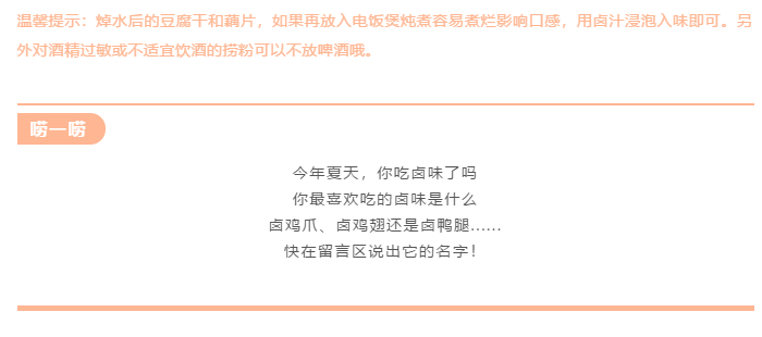 所以這篇文章中也多以紅黃的色調來呈現,哪怕是鹵味的配圖,背景都是黃紅色桌子,色彩協調一致,沉浸感真的特別強!