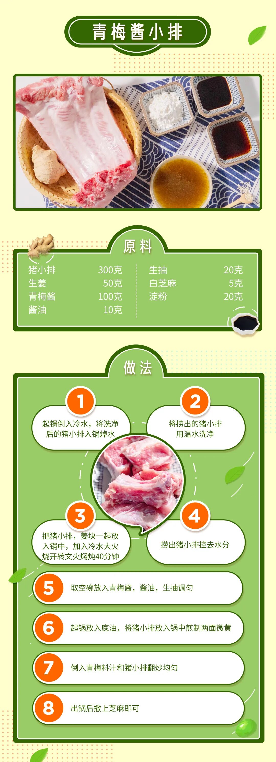 這篇文章主要是介紹【青梅醬小排】,所以主色調定為青綠色,搭配排骨的橙色。