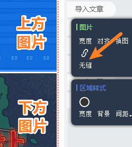 上傳圖片之后,點(diǎn)擊兩張圖片中,位于上方的圖片。在菜單欄中選擇【無縫】,兩張圖片就可以無縫拼接在一起。