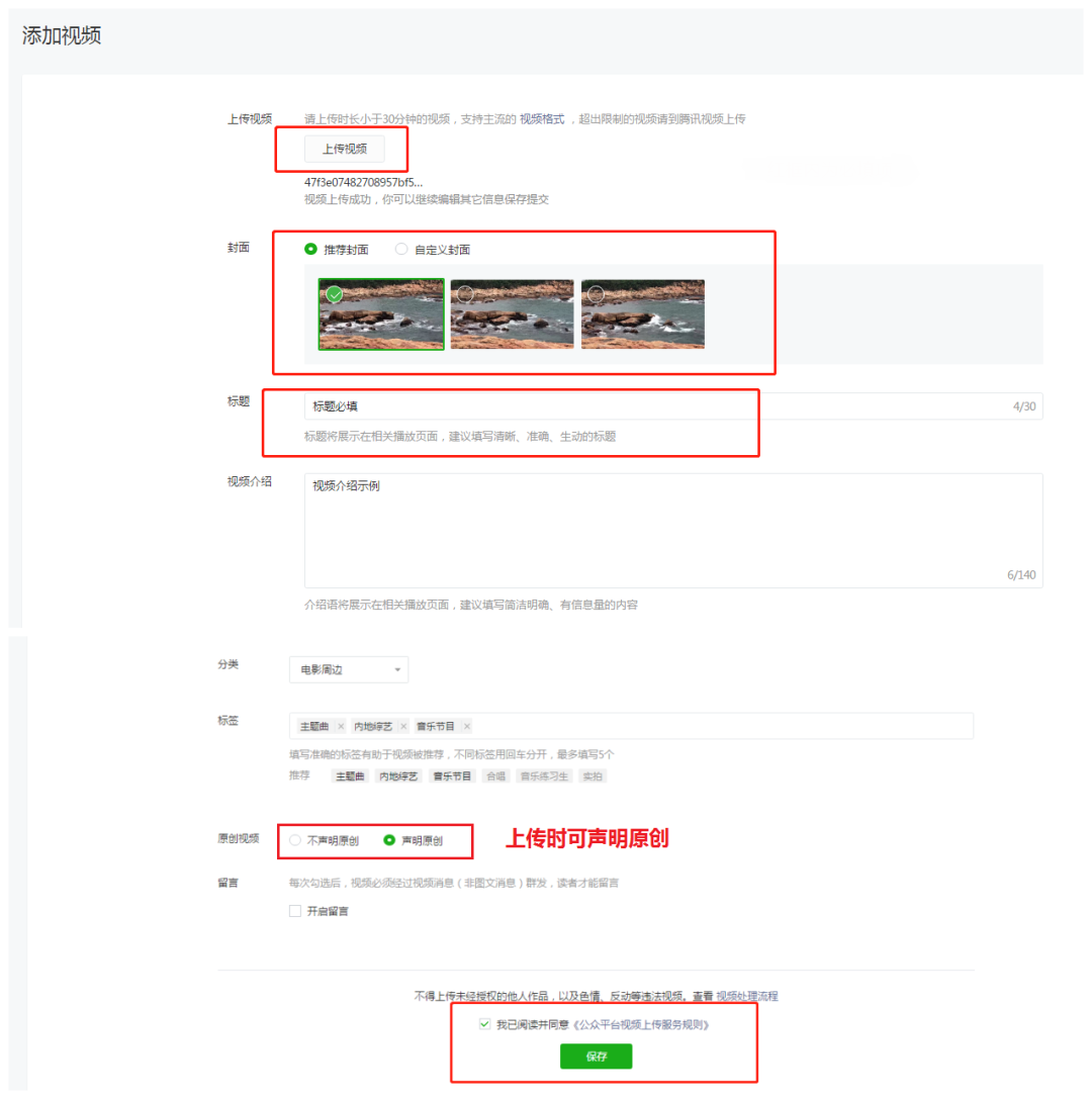 (3)支持聲明原創(chuàng),有原創(chuàng)功能的賬號,上傳的視頻為原創(chuàng)時,可在此頁面選擇聲明原創(chuàng)。