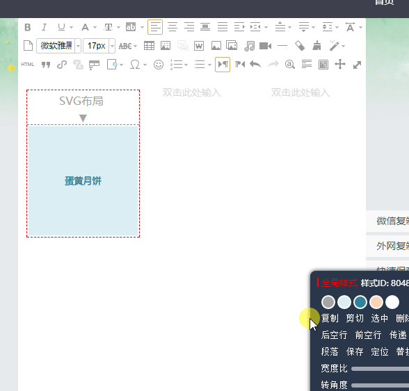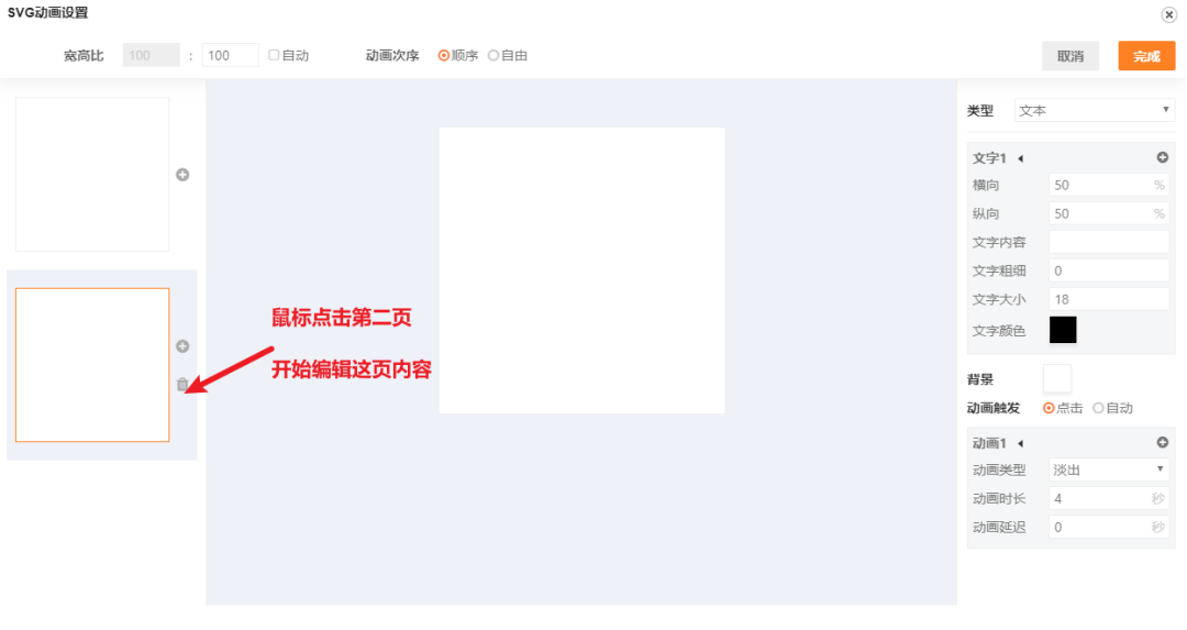 雙擊第一個空白處,然后點擊一個公眾號SVG布局,放置其中。然后在菜單欄中選擇【SVG布局動畫】。