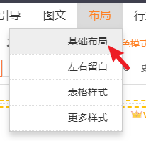 2、在基礎(chǔ)布局,找到一行三個基礎(chǔ)布局,點擊樣式,放置在135編輯器編輯區(qū)內(nèi)。九宮格其實就是由三個一行三列的基礎(chǔ)布局組合而來的。這里我們先編輯其中一個,后面兩行直接復制粘貼出來就可以了。