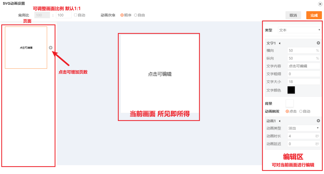 制作這個效果前,我們先對公眾號SVG動畫設(shè)置版面有個初步了解。大家可以點擊下面圖片,詳細查看。