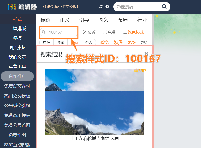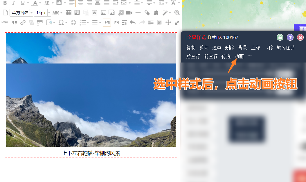 2.搜索樣式ID:100167,找到『上下左右切換圖片』樣式,插入至編輯器中。