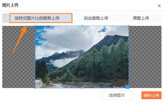 5.在圖片上傳界面,選擇按樣式圖片比例裁剪上傳。