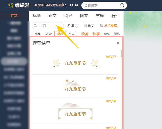 這些素材大家可以在135編輯器內(nèi),搜索關(guān)鍵詞:重陽,即可使用。