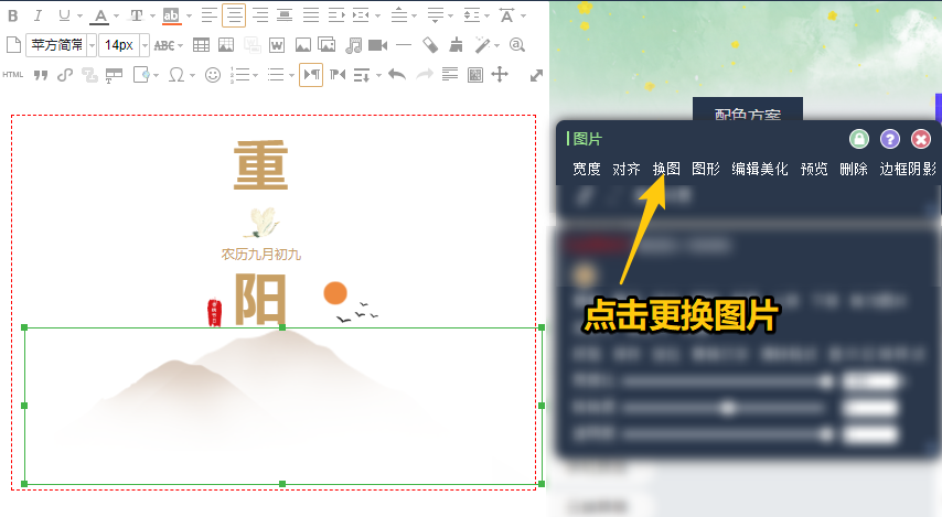 重陽節(jié)素材換圖后就是另外一種效果啦,胖友們可以根據(jù)自己微信公眾號排版的需求隨意更換圖片哦。