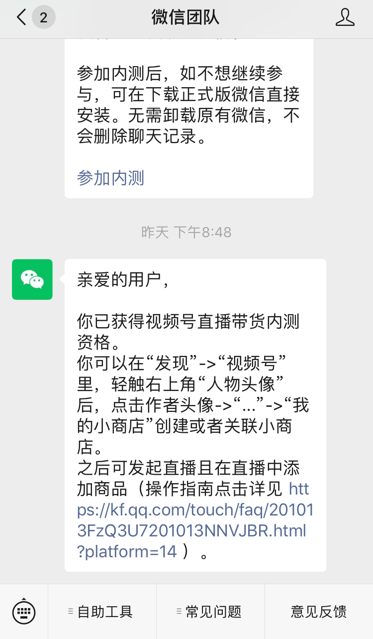 10月14日起,不少用戶收到了視頻號直播帶貨的內(nèi)測資格通知。