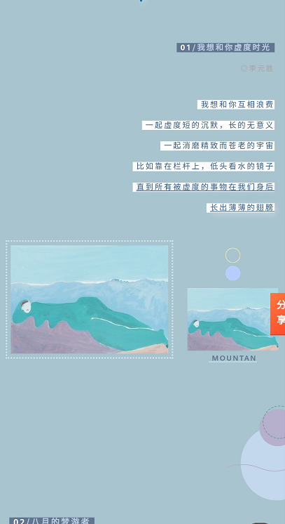 高級感溫柔風(fēng),簡直就是下面這個排版的代名詞。米色作為底色,運用綠色、藍(lán)色、褐色多種色塊來做點綴搭配,大量留白給了畫面足夠張力,讓整個畫面看起來舒適溫柔。