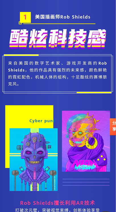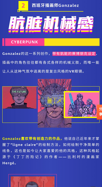 賽博朋克配色,絕對炸眼睛的作品,顏色明明都很鮮艷,卻出乎意外的互補,這篇排版將配色運用到了極致,搭配出科技感十足的賽博朋克排版。