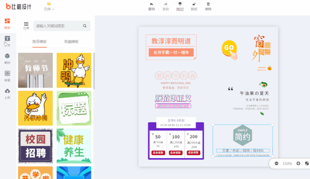4. 左側(cè)【文字】素材欄有大量精美設(shè)計的圖文組合樣式,能夠直接替換文字哦~