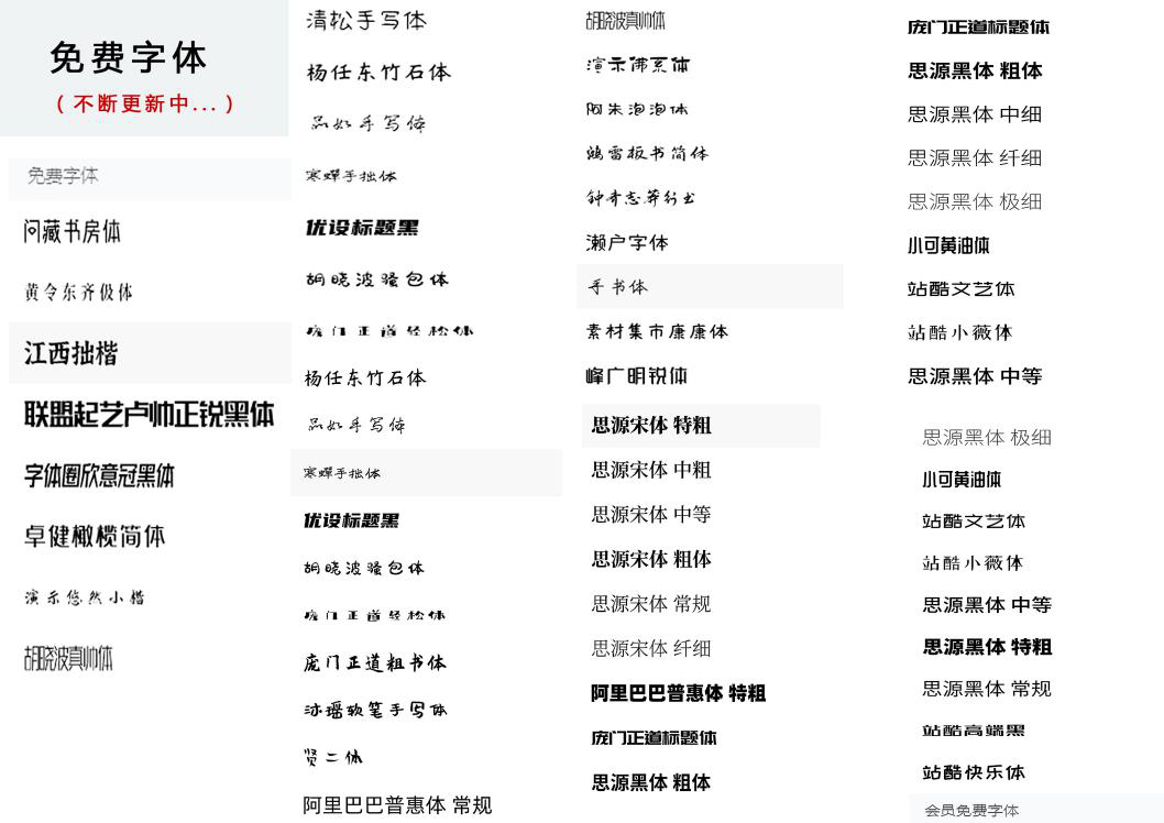2. 右側(cè)【字體設(shè)置】中海量字體庫免費商用。