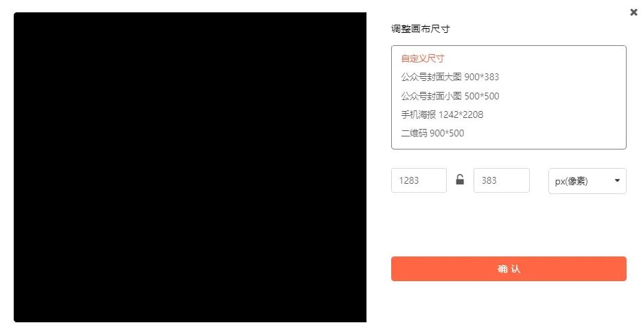 打開畫布之后,點(diǎn)擊右側(cè)的尺寸編輯,敲黑板,這里需要記一下,為了使兩張封面圖橫向拼接,我們把畫布尺寸設(shè)置為1283*383。