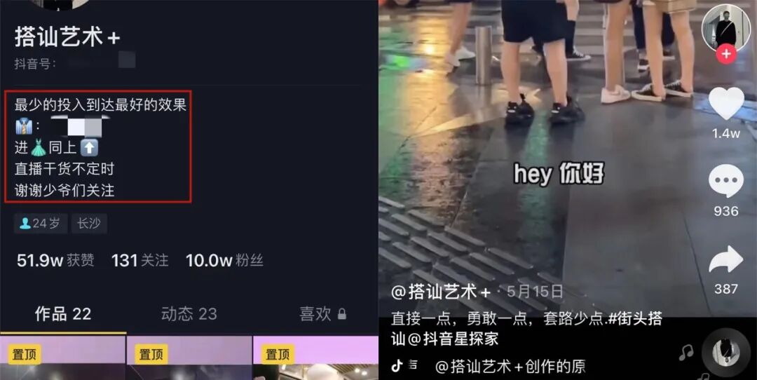 他們打著一種宣傳口號“學完搭訕課,就能約到女生”,發(fā)布在抖音上的視頻,畫面感十足,讓很多男性粉絲蠢蠢欲動。