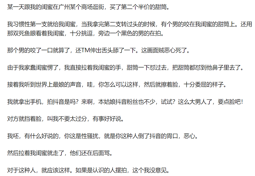 有女孩將自己被搭訕的糟心經歷發(fā)在了知乎上,發(fā)朋友圈照片時,突然背人含住了自己的甜筒,嚇得差點跪到地上。