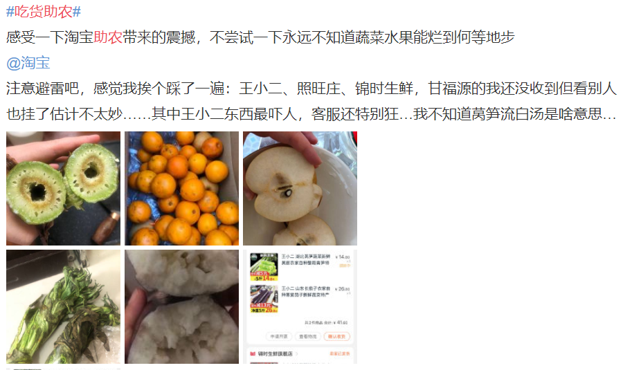 在這里,我們要明確一個(gè)事實(shí)。那就是,真的會(huì)有因?yàn)楦鞣N天災(zāi)或者事故而造成大批量的滯銷,從而向外界尋求幫助,這不是賣慘營銷,這是事實(shí)。