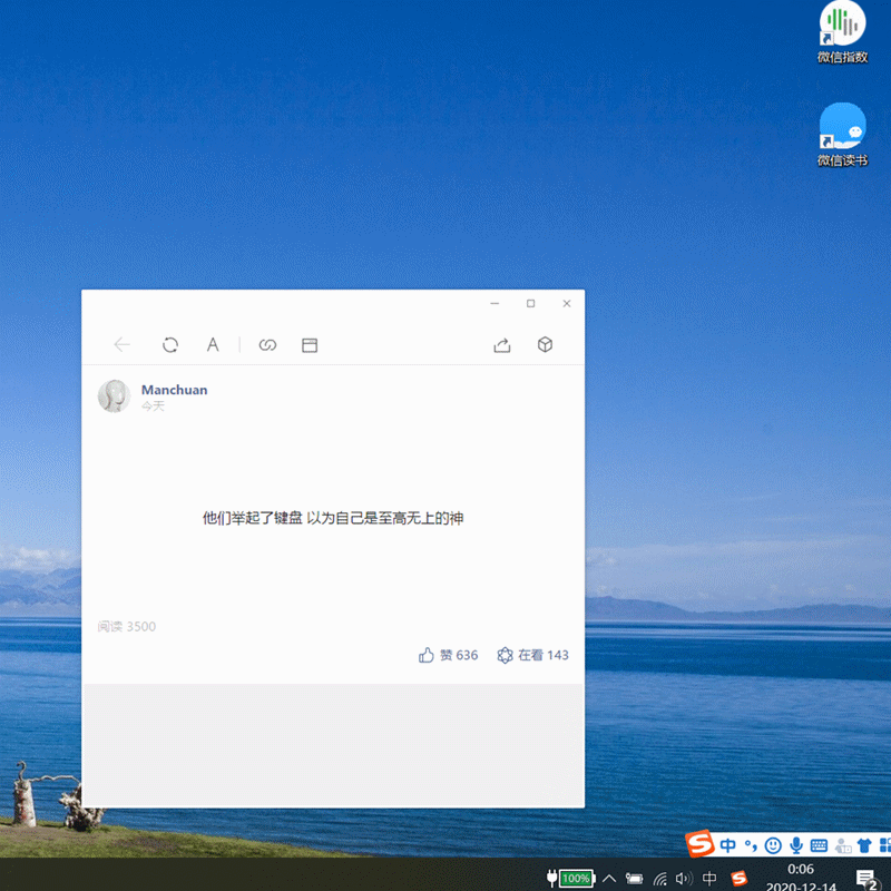 創(chuàng)始人@Bacteria 在某新媒體群稱(chēng),不是故意做為了抑郁,不是為了流量做公眾號(hào)「Manchuan」的,自己純粹是個(gè)搬運(yùn)工。