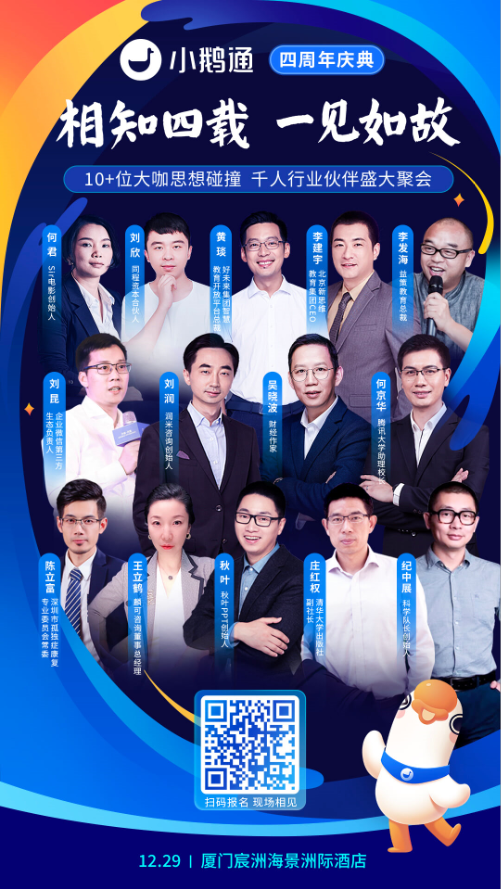 回顧過去的2020年,小鵝通籌備了一場5個小時的思想碰撞,邀請吳曉波、劉潤等14位行業(yè)大咖一起聊聊這一年的經(jīng)歷與暢想。現(xiàn)開放少量對外報名名額,歡迎大家報名~