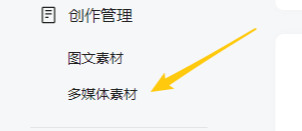 1、準(zhǔn)備好視頻素材,打開公眾號后臺,點(diǎn)擊『創(chuàng)作管理』中的『多媒體素材』。