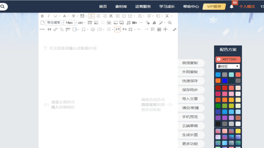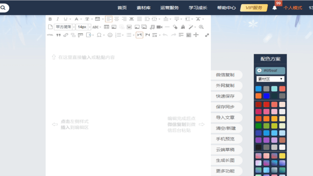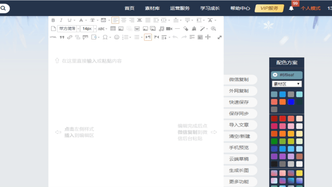 1、復(fù)制好顏色色值代碼后(上面講過的),回到135編輯器官網(wǎng),在右側(cè)『配色方案』下的色值區(qū),點(diǎn)擊粘貼剛剛復(fù)制的代碼。