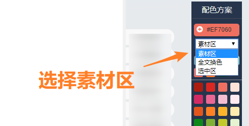 1、點(diǎn)擊右側(cè)配色方案下的 ▼,選擇『素材區(qū)』。